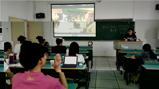 王遜博士帶領大家觀摩微電影班學生作品《死亡快闆》和《看起來很美》,指出兩部作品存在的主要問題,即《死亡快闆》存在剪輯上的硬傷,比如聲畫分離、跳幀、跳接等,而《看起來很美》存在演技和置景的問題,并仔細拉片,在每一處需要改進的地方提出可能的改進方式,在此基礎上提出了許多微電影創作的原則和知識。