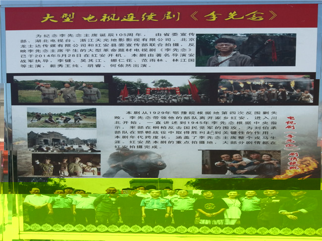 中國紅安将軍影視城于2013年1月由深鴻潤集團公司投資,拟投資35億元人民币,在城關鎮似馬山規劃區内規劃用地4000畝,建設将軍文化博覽園、将軍文化觀光帶、軍事活動主題公園、軍事文化科技體驗帶、農墾休閑養生帶以及旅遊休閑配套中心等項目。2013年5月,抗日連續劇《鐵血紅安》在紅安将軍影視城開機拍攝,2014年8月,開機拍攝了電視劇《血符》,電視劇《李先念》《東方戰場》,後來又拍攝了電影《無名戰役》。該實踐基地為新聞與傳播學院研究生高端實習實踐基地,作為研究生教育、教學的重要平台。